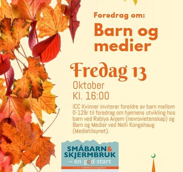 ICC Kvinner inviterer foreldre av barn mellom 0-12år til foredrag om hjernens utvikling hos barn ved Rabiya Anjem (nevrovietenskap) og Barn og Medier ved Nelli Kongshaug (Medietilsynet).